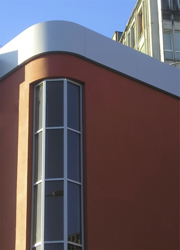 - Архітектурні елементи з АКП на звичайних фасадах. На будівлях, оздоблених традиційним, «мокрим» способом, деталі з АКП використовуються як для облицювання існуючих елементів фасаду – відкосів, балконів, колон, так і для створення декоративних архітектурних елементів – фризів, пілонів, порталів, карнизів. Використання архітектурних елементів з АКП дозволяє прикрасити фасад, створивши додаткові кольорові або фактурні акценти. Крім того, виготовлення та монтаж архітектурних елементів з АКП значно швидше, ніж облаштування їх традиційними способами.