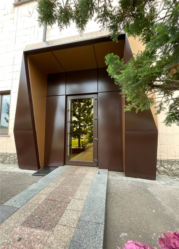 - Практичну. Вхідна група полегшує пошук входу в будівлю чи до офісу та забезпечує комфорт відвідувачам будівлі, захищаючи від атмосферних опадів.