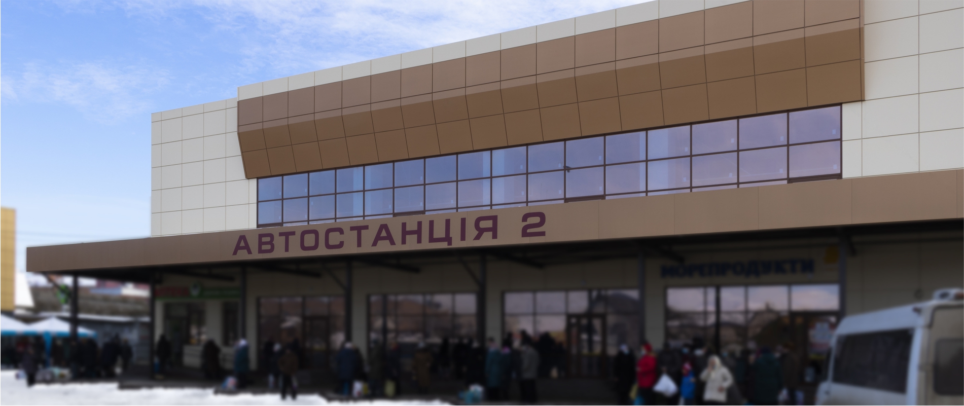 Влаштування вентфасаду з АКП Naturalbond т.4мм. Підсистема з оцинкованих сталевих профілів. Тип облицювання – «закритий руст». Влаштування парапету з оцинкованого металу з полімерним покриттям.