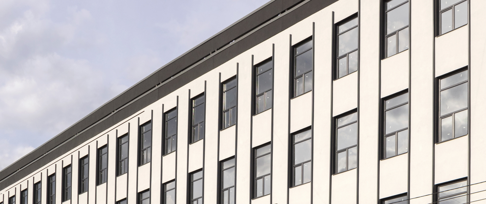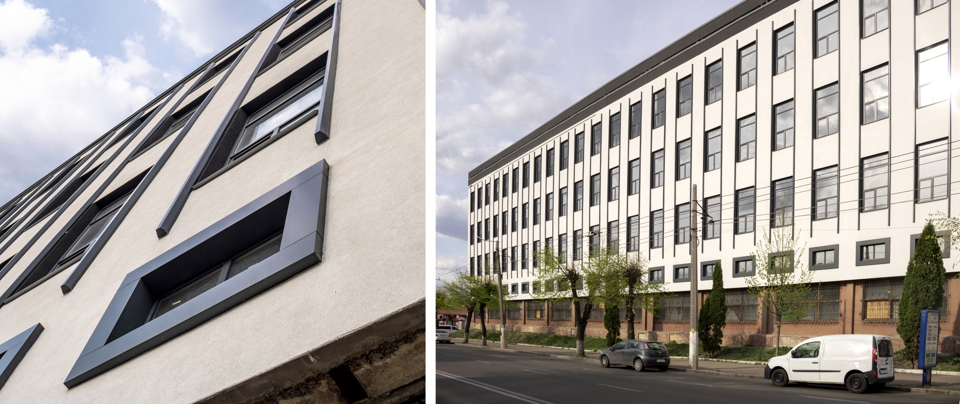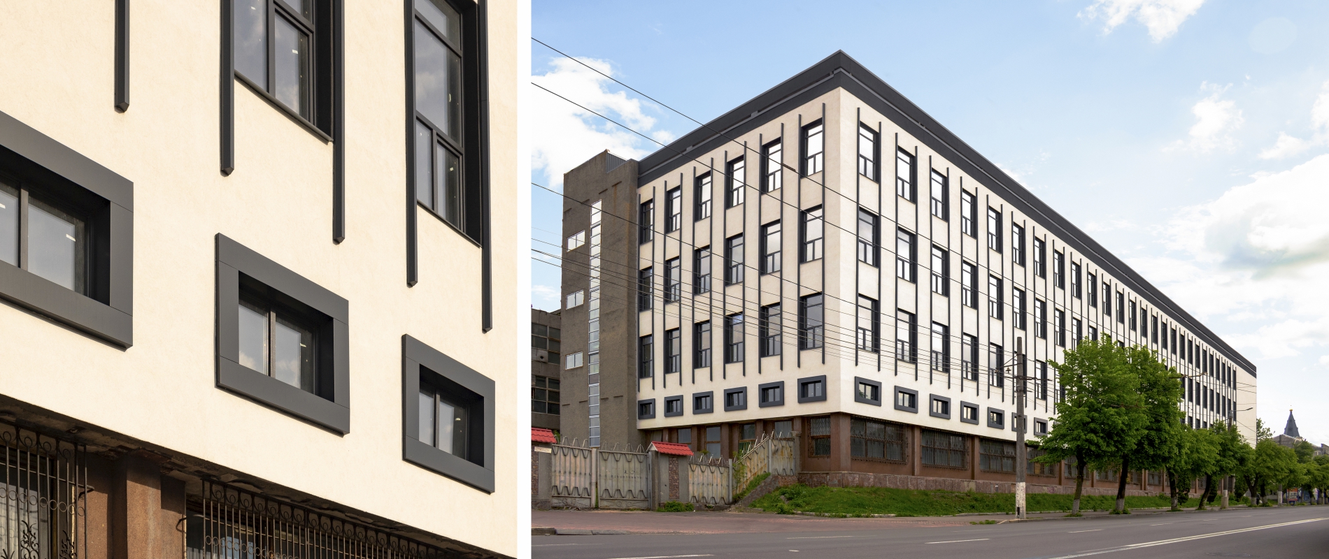 Облицювання віконних відкосів та виготовлення пілястр з АКП Naturalbond т.4мм. Алюмінієва підсистема. Тип облицювання — «безшовне з’єднання».