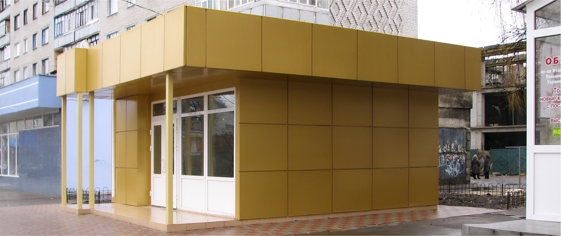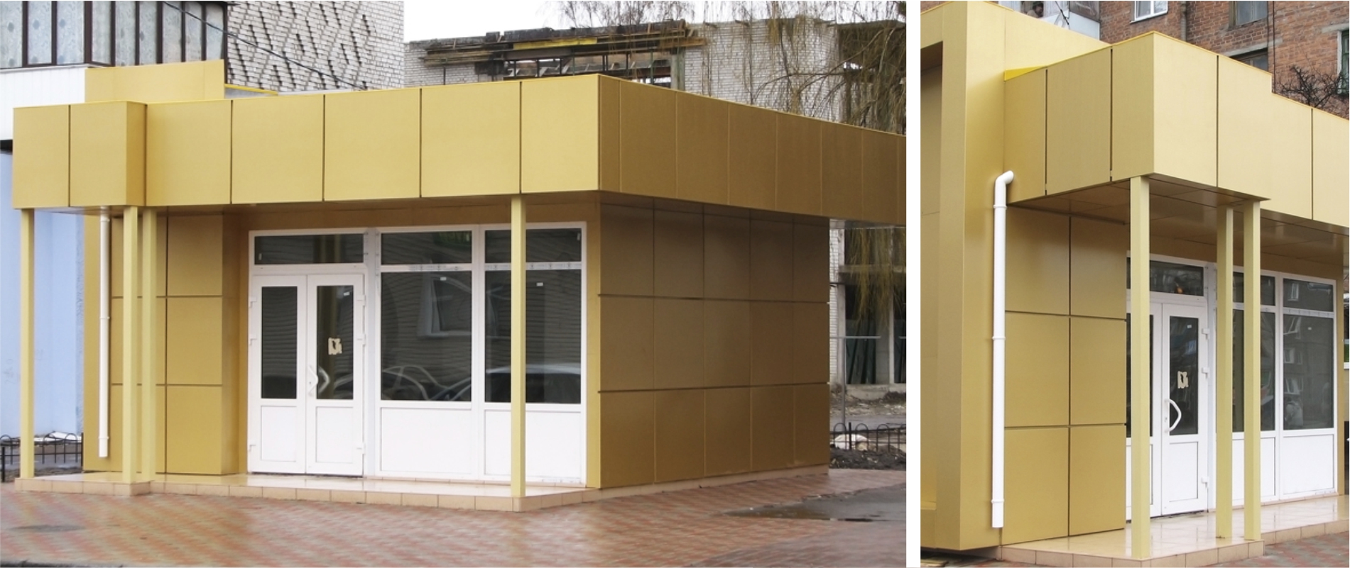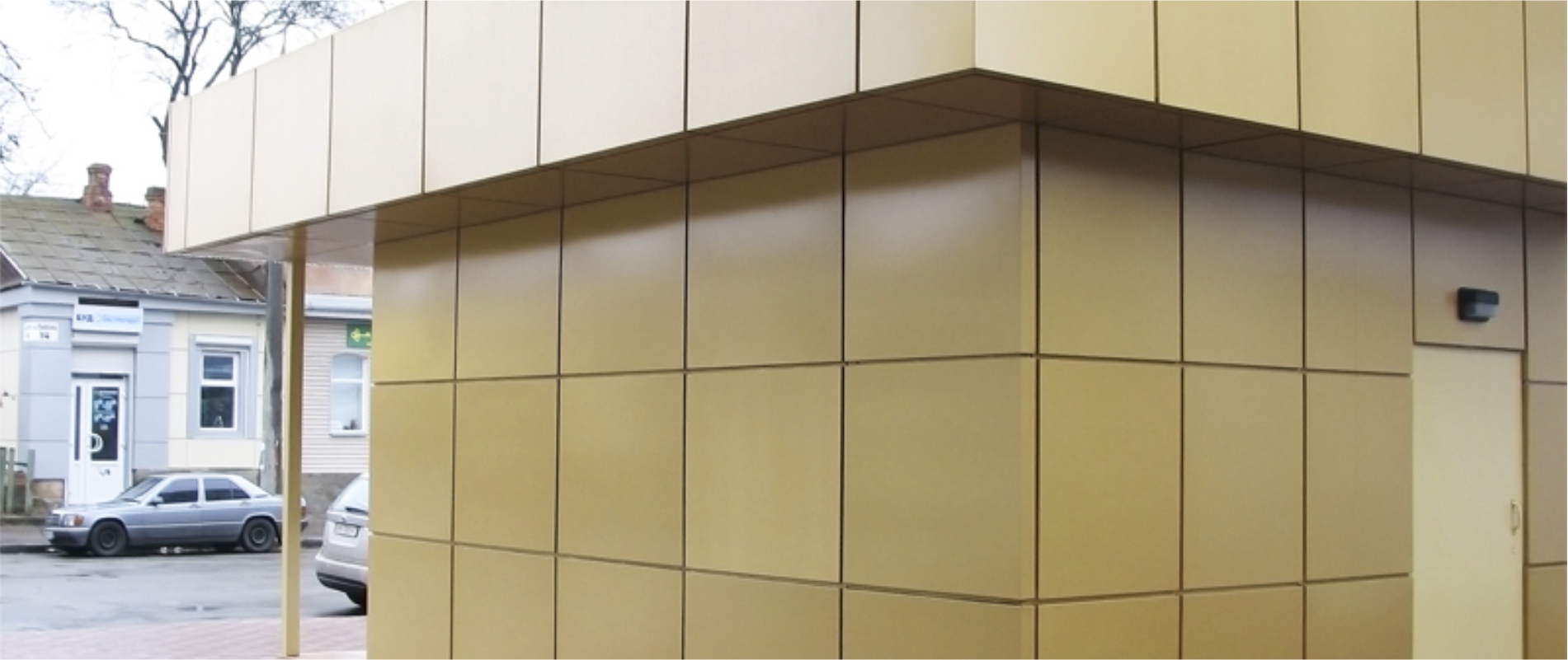 Облицювання фасаду АКП Ecobond т.3мм. Підсистема з оцинкованих профілів економ серії типу СD. Тип облицювання – «закритий руст».
