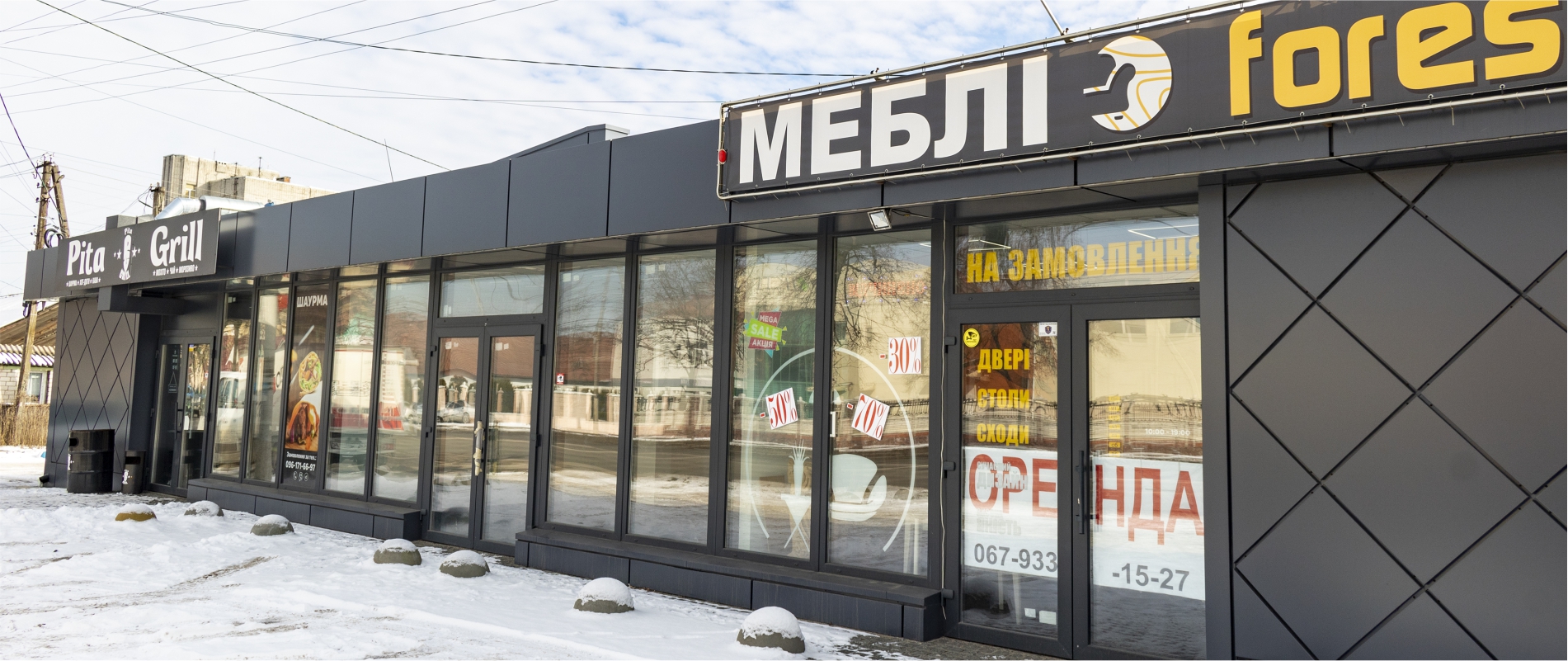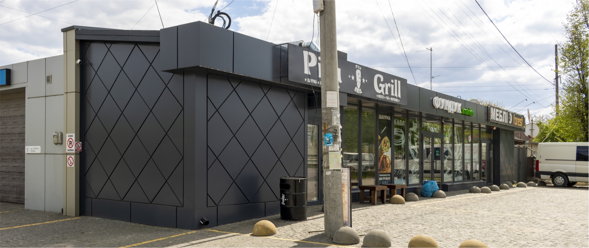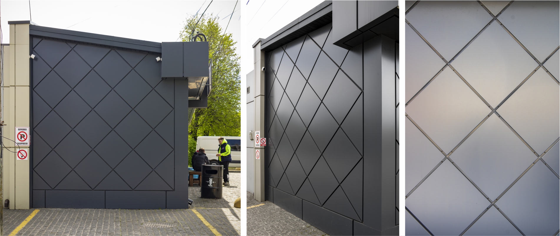 Облицювання фасаду АКП Ecobond т.3мм. Підсистема з оцинкованих сталевих профілів. Тип облицювання – «закритий руст».