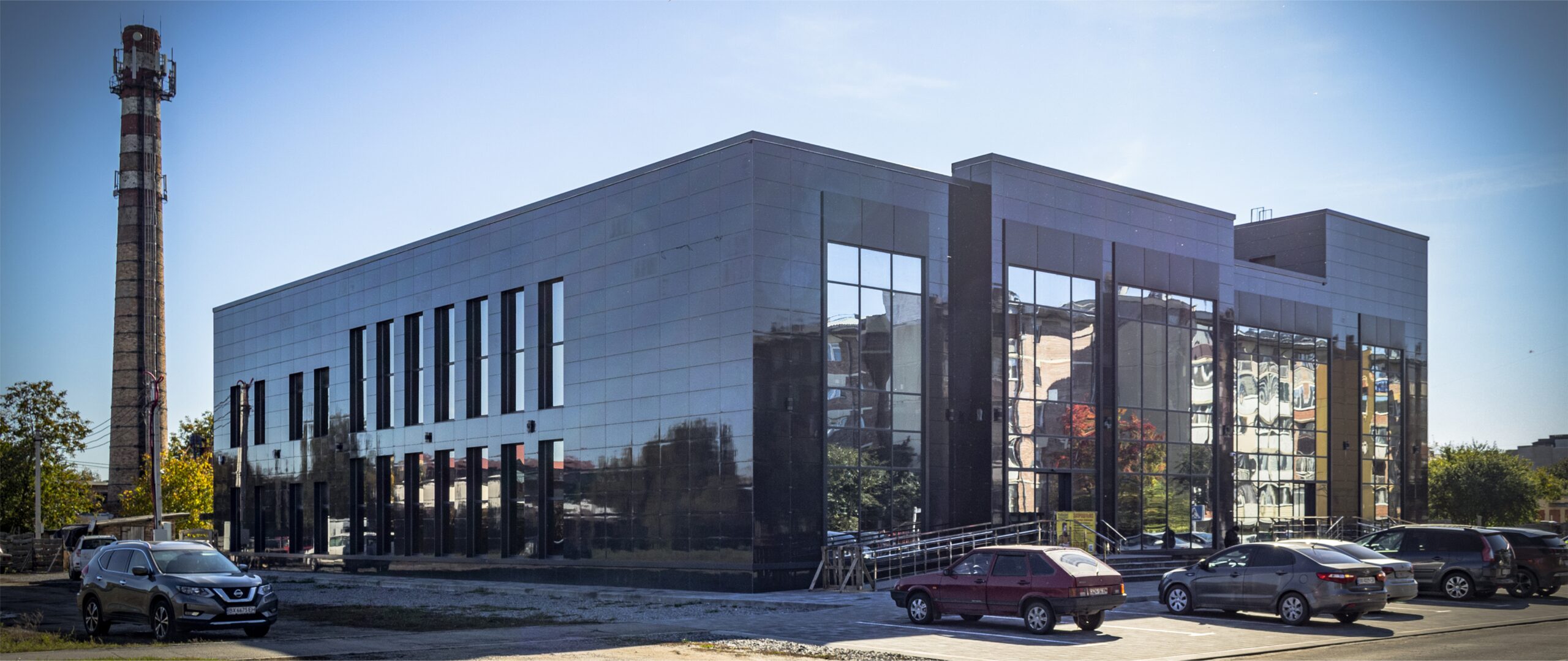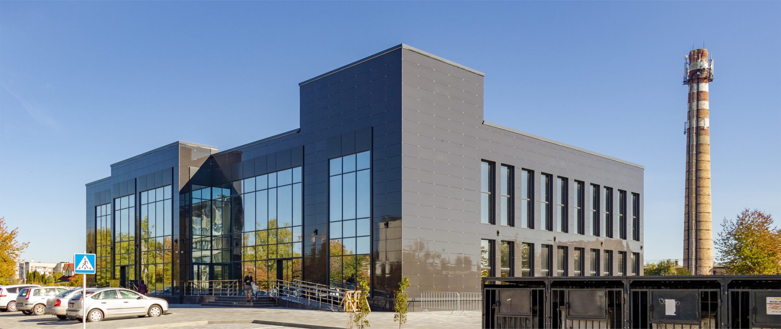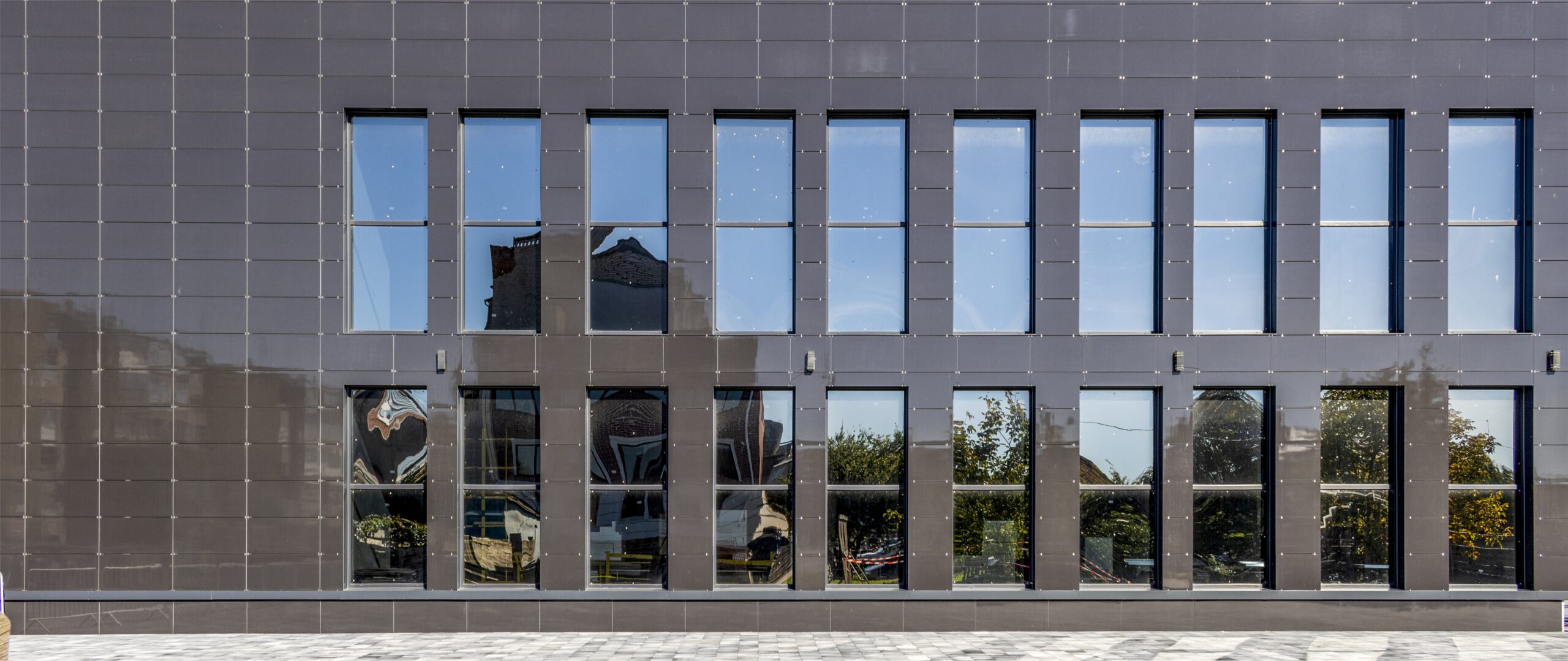 Влаштування вентфасаду з керамограніту. Алюмінієва підсистема. Відкрита система монтажу – на кляймерах з нержавіючої сталі. Облицювання віконних відкосів та парапету. АКП Naturalbond т.4мм.