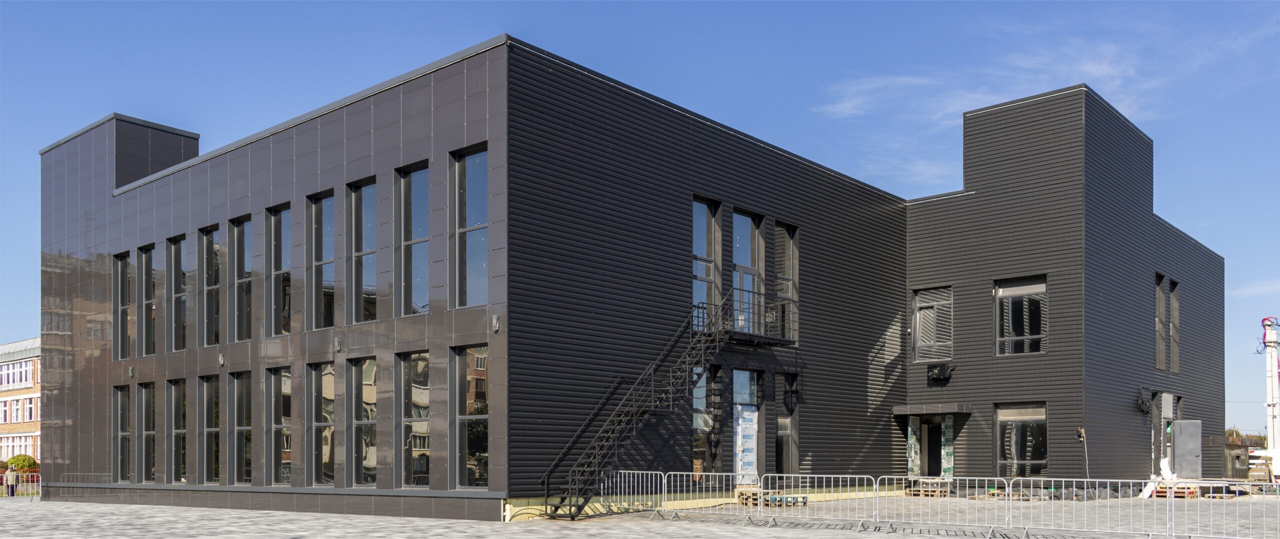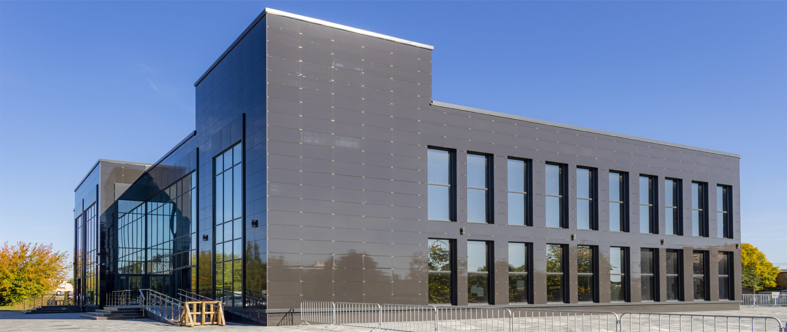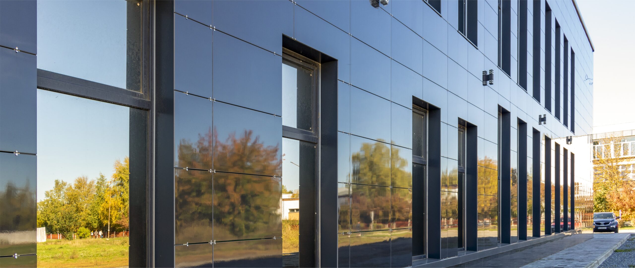 Влаштування вентфасаду з керамограніту. Алюмінієва підсистема. Відкрита система монтажу – на кляймерах з нержавіючої сталі. Облицювання віконних відкосів та парапету. АКП Naturalbond т.4мм.