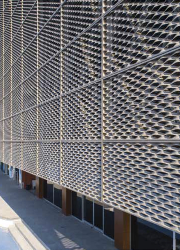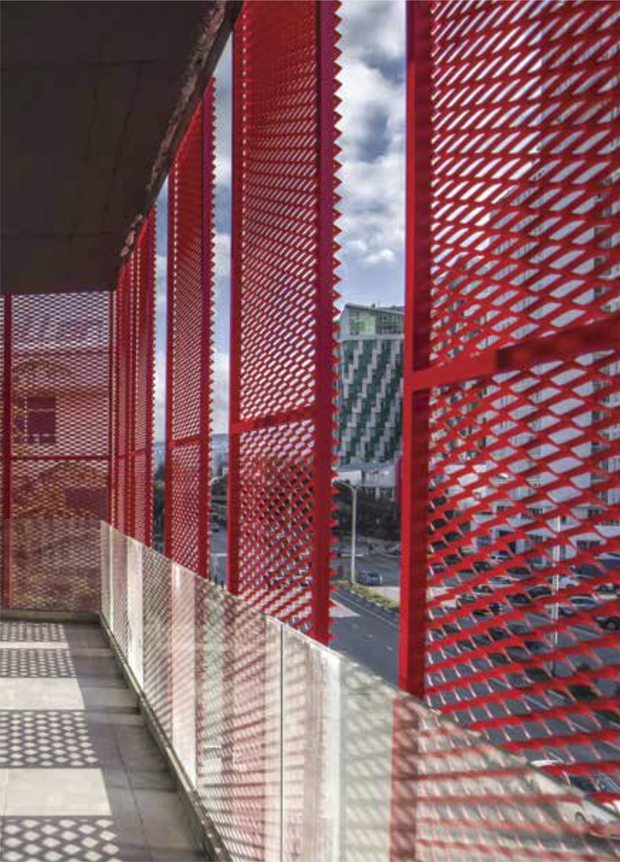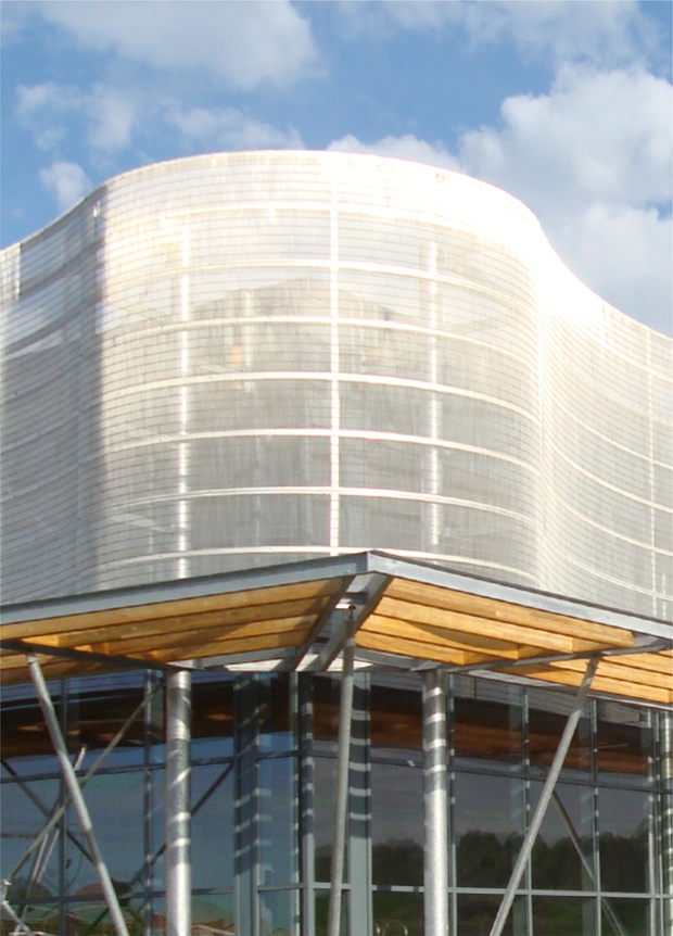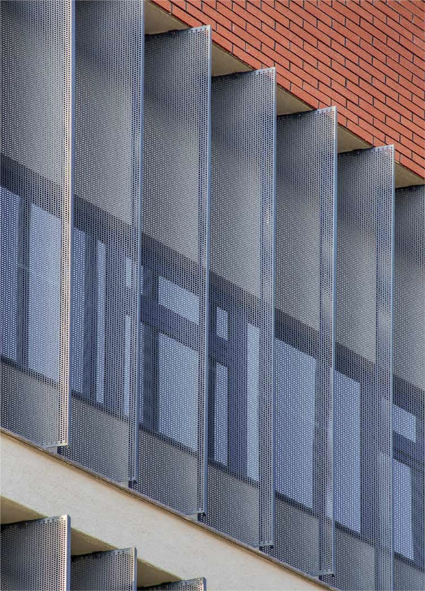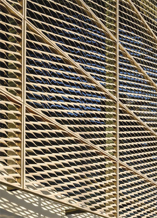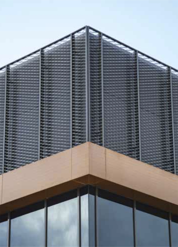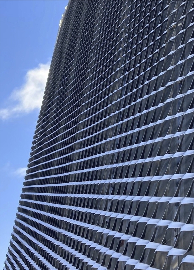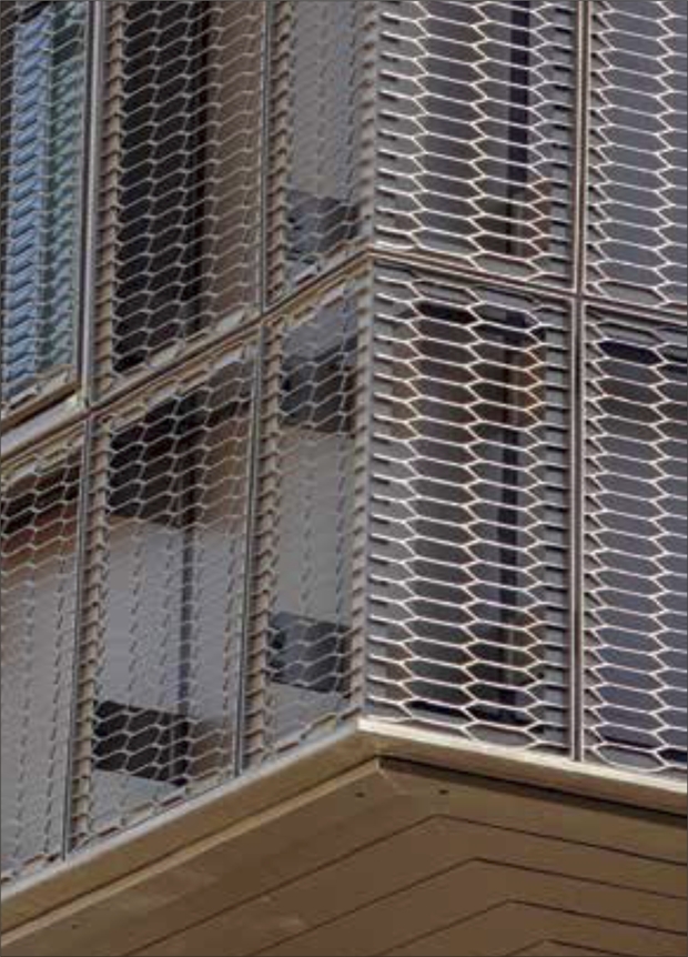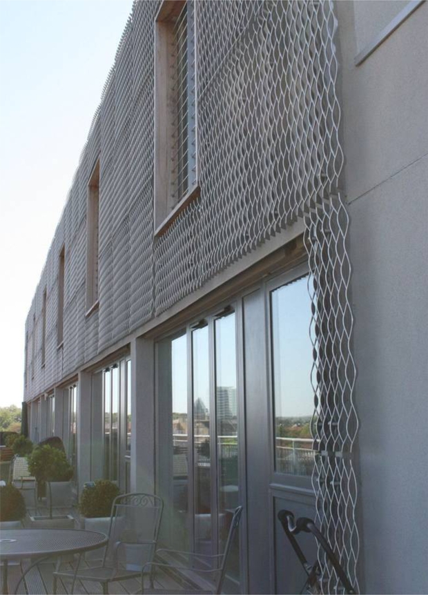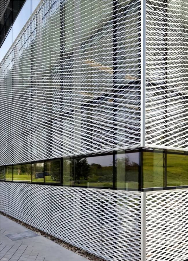 - Архітектурні сітки на фасаді будівлі дозволяють виділяти або, навпаки, візуально об’єднувати різні елементи фасадів. Наприклад, фасад з вікнами, закритий архітектурною сіткою, буде виглядати суцільним, дозволяючи при цьому світлу потрапляти всередину будівлі.